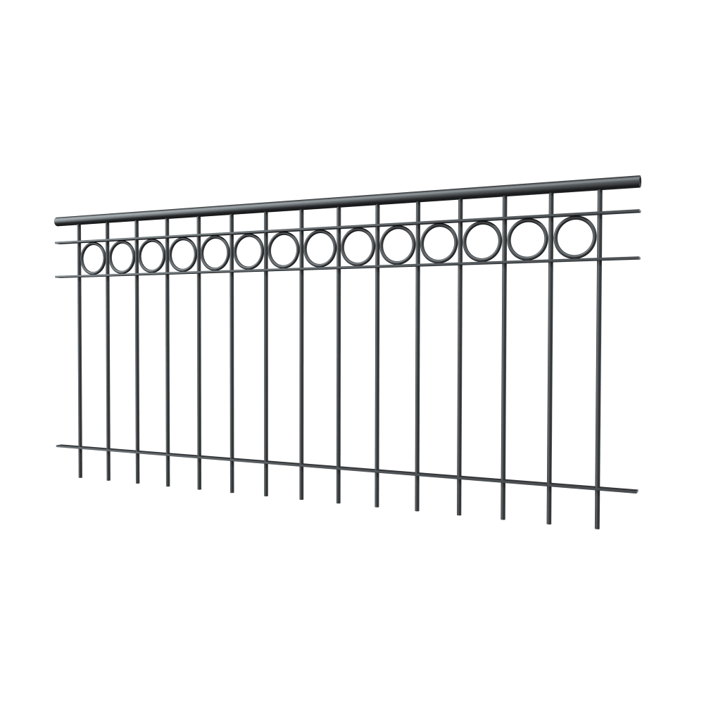 Elegant design met elegante details: "Belluno" maakt indruk met ronde decoratieve elementen die de stevige reling een delicaat tintje geven. Met de hand gesmeed uit massief metaal is de "Belluno" metalen reling weerbestendig en vormvast. De reling is 192,5 cm breed en 90 cm hoog (vóór montage).