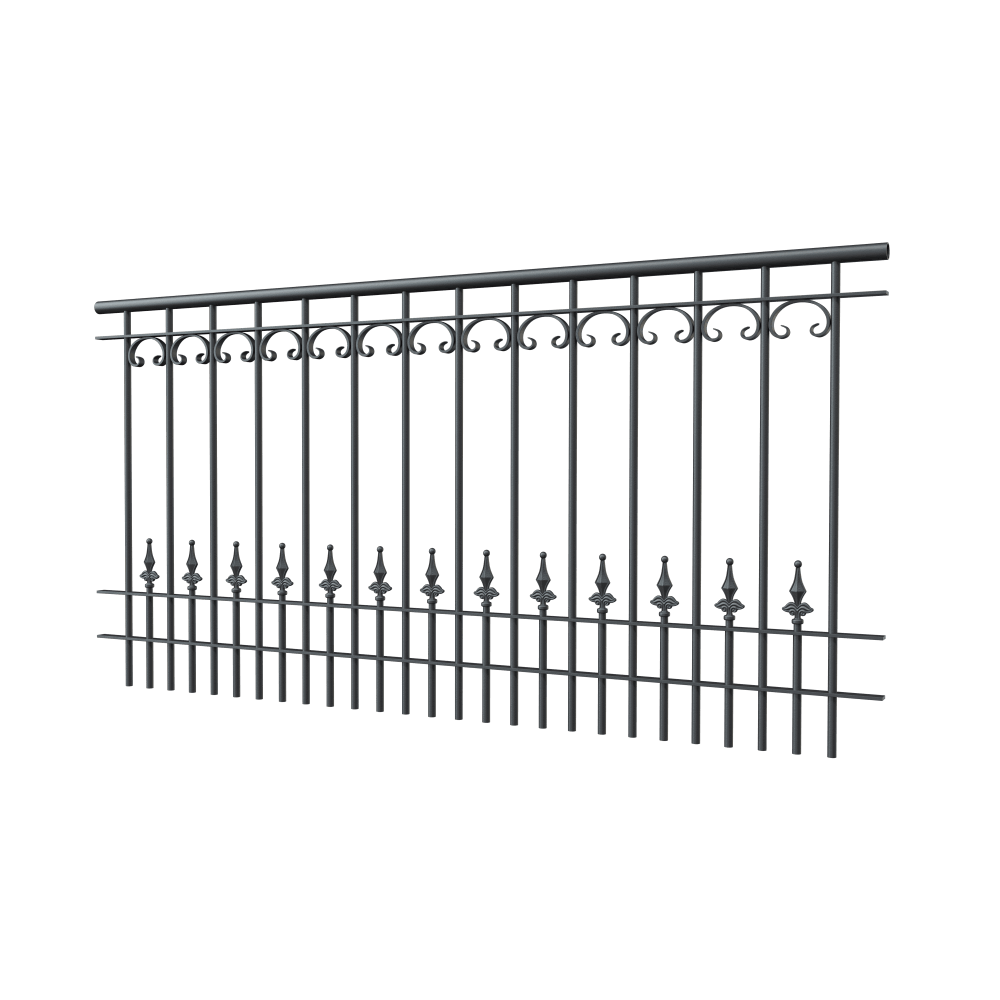 Nahaufnahme Zaun Pino mit Spitze Pinie in pulverbeschichtet anthrazit