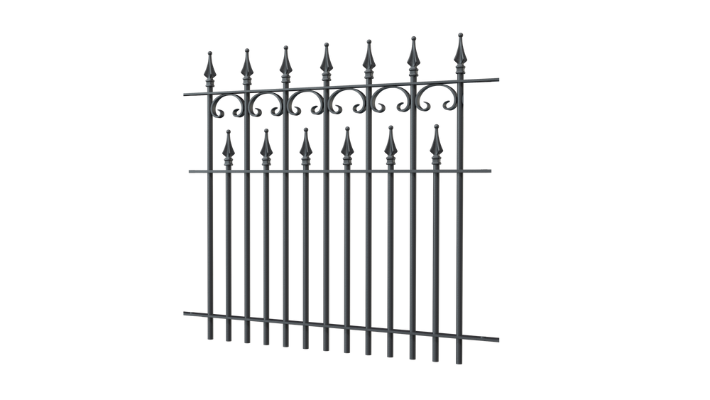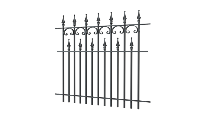 Romantiek ontmoet nostalgische charme: ons “Lugano” hekwerkmodel maakt indruk met uitgebreide details en perfecte elegantie. Filigraan C-decors en talrijke spijlen zijn bijzonder opvallend. Het metalen hekwerk “Lugano” wordt met de hand gemaakt en overtuigt door zijn maatvastheid en betrouwbare weerbestendigheid. De standaardbreedte van elk hekelement is 192,5 cm en de hoogte inclusief toppen is 90 cm.