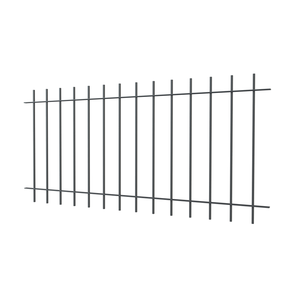 Nahaufnahme Zaun Pino mit Spitze Pinie in pulverbeschichtet anthrazit