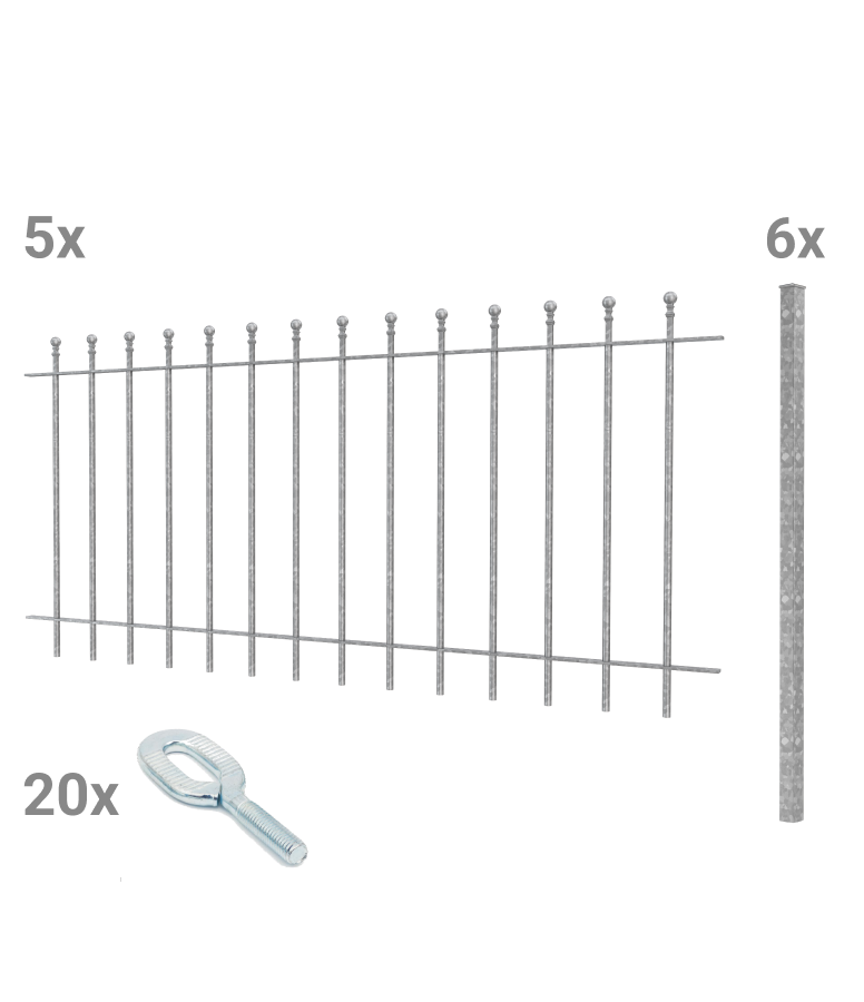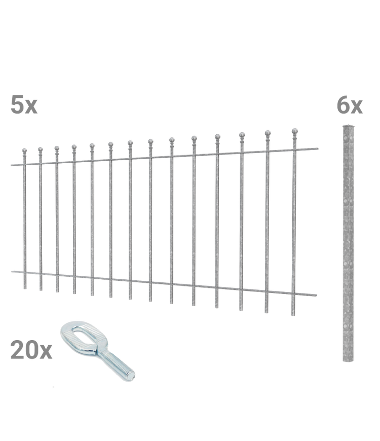 De "Ancona" hek is een blikvanger met zijn bolvormige toppen. "Ancona" heeft een standaardbreedte van 192,5 cm en een hoogte van 90 cm. Het hoogwaardige hek is met de hand gemaakt van massief, weerbestendig smeedijzer.