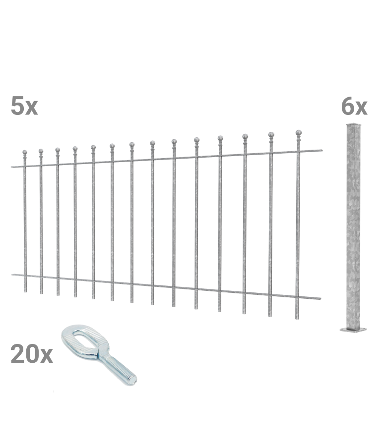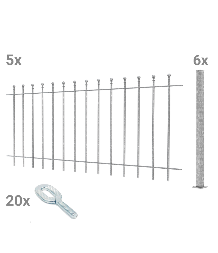 De "Ancona" hek is een blikvanger met zijn bolvormige toppen. "Ancona" heeft een standaardbreedte van 192,5 cm en een hoogte van 90 cm. Het hoogwaardige hek is met de hand gemaakt van massief, weerbestendig smeedijzer.