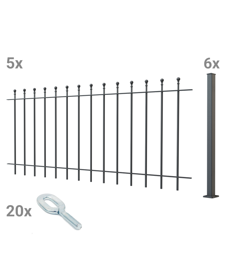 De "Ancona" hek is een blikvanger met zijn bolvormige toppen. "Ancona" heeft een standaardbreedte van 192,5 cm en een hoogte van 90 cm. Het hoogwaardige hek is met de hand gemaakt van massief, weerbestendig smeedijzer.