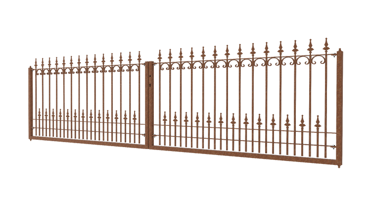 De "Lucca" poort beveiligt je eigendom met elegantie en stijl. Net als ons gelijknamige heksysteem maakt ook de "Lucca"-poort indruk met zijn aantrekkelijke C-vormige versieringen en bolvormige lelievormige bovenkanten. Kies zelf de coating en geef je poort een persoonlijk tintje!